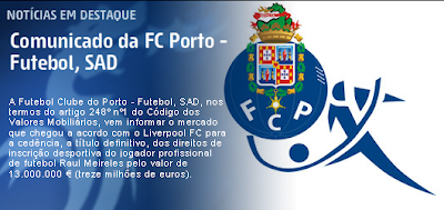 6. Financeiramente foi um bom negócio, o Ozil que joga na mesma posição, e é mais novo, foi para o Real por € 15 M. Claro que preferia que o Raul continuasse, embora já tenha concorrência no plantel, mas se ele queria e já tinha dado a entender que tinha o desejo de jogar no estrangeiro, o Porto tinha de arranjar um comprador. Desejo-lhe boa sorte e agradeço tudo o que ele fez no Porto.