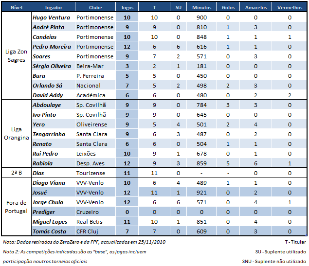 Dois meses depois, mais um pequeno balanço sobre os nossos jogadores emprestados a outros clubes (clicar para ampliar):